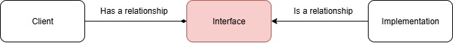 The client should depend on the service interface, not directly on its implementation, to perform tasks.